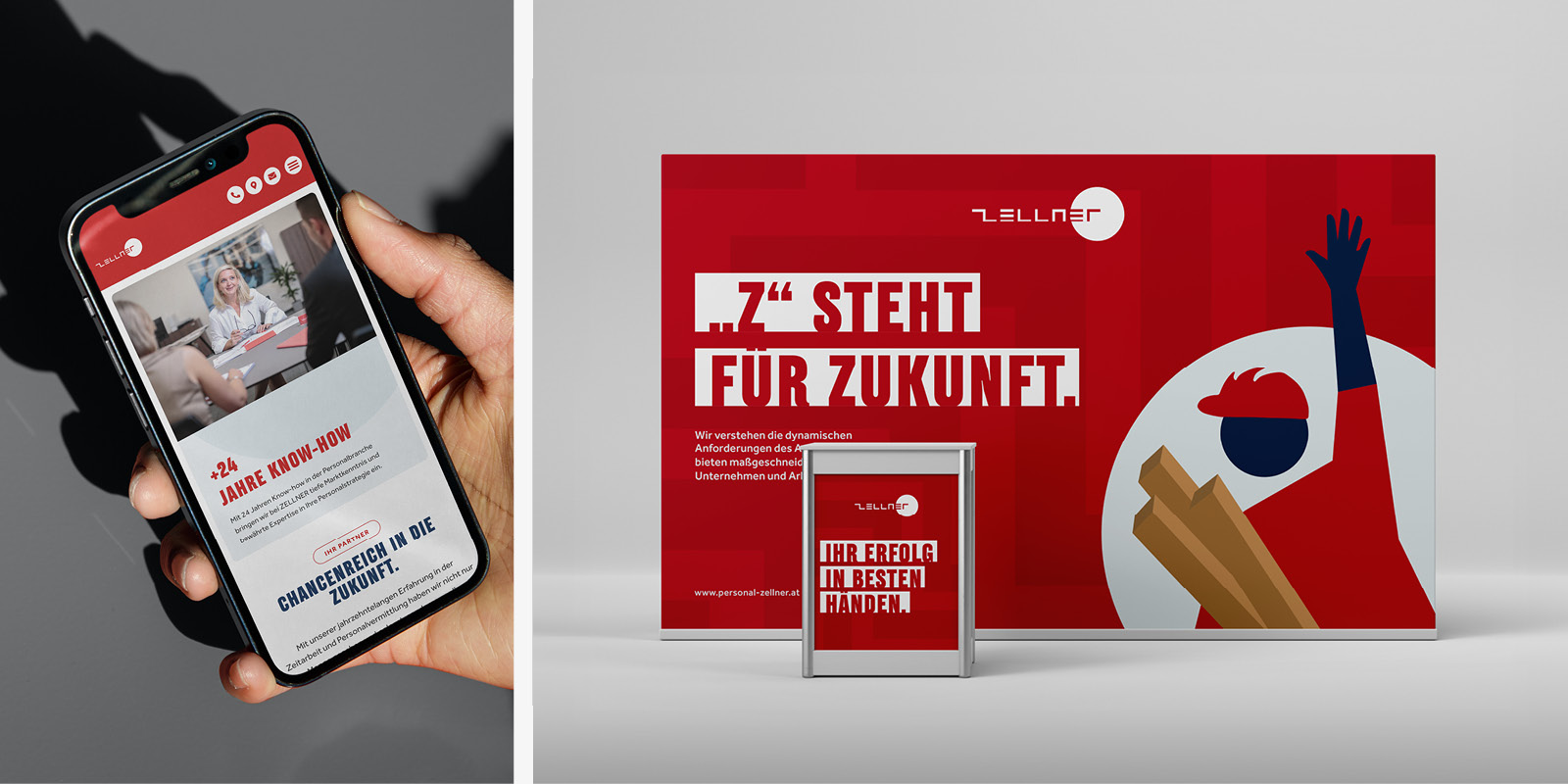 We worked closely together to redesign the branding of the established recruitment agency ZELLNER. Our measures included a well thought-out brand strategy, an appealing design and the relaunch of the digitalization of the brand as a comprehensive website.